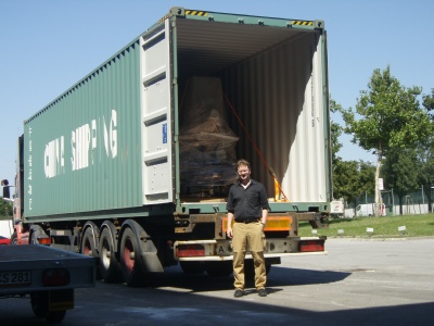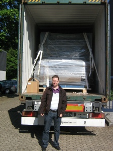 Während der Verladung wird natürlich auch der Container auf eventuelle Schäden untersucht. Dies vermeidet ein Eindringen von Wasser zur Verhinderung von Korrosion an der Maschine. Eine Stückliste mit Bildern der verladenen Teile der Druckmaschine wird erstellt, die Nummern der Container und Fahrzeuge notiert und nach Beendigung der Verladung werden all diese Schritte selbstverständlich transparent dokumentiert.
